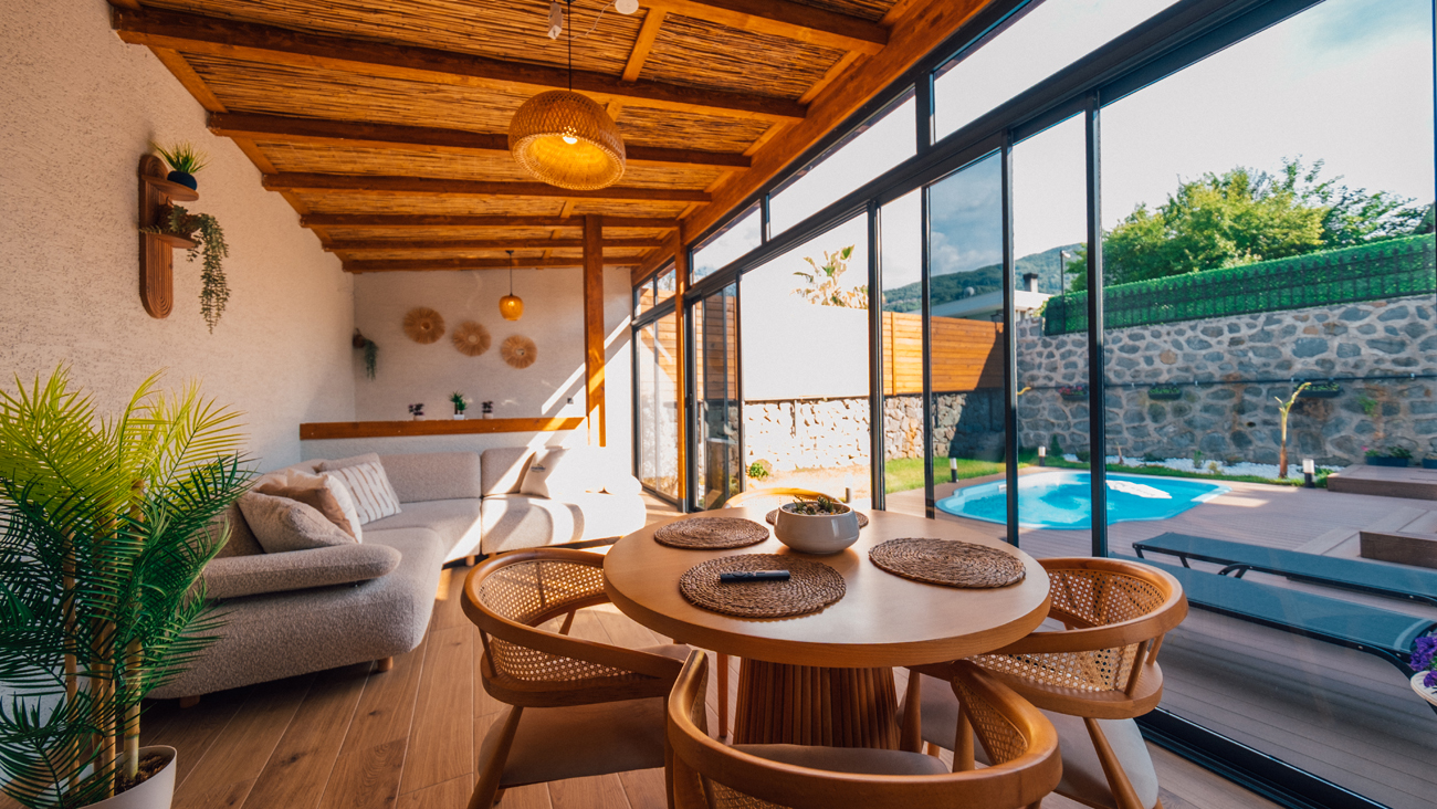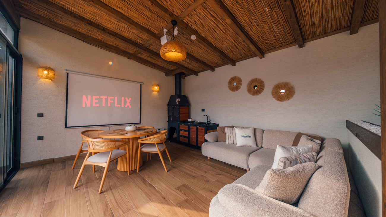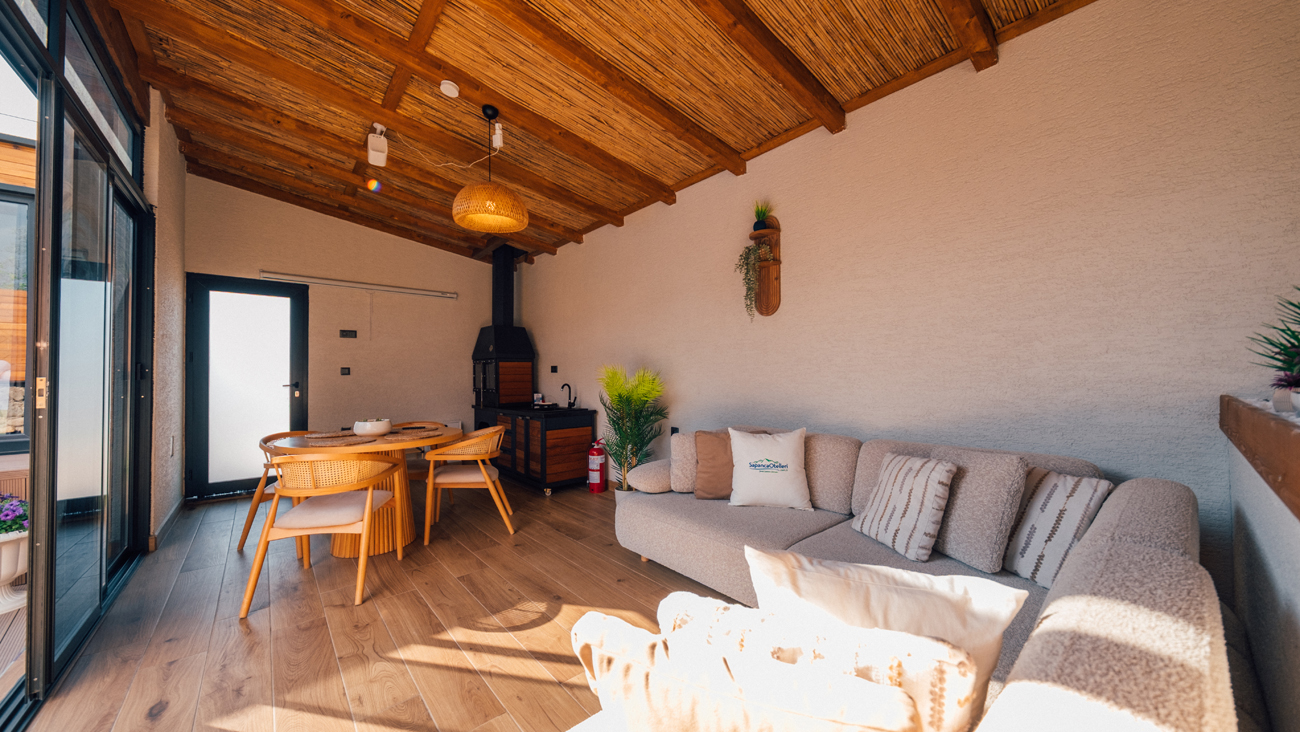 Kış Bahçesi: L koltuk, Jakuzi, sinema sistemi, özel tasarım barbekü, yemek masası bulunmaktadır.