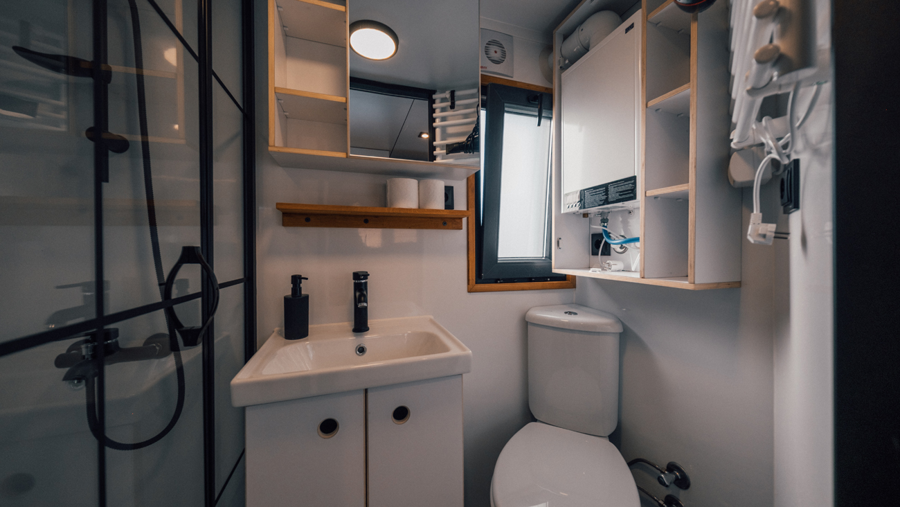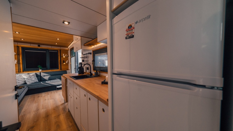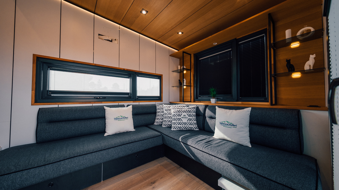 Salon: Açılabilir L Koltuk, yemek masası, klima, yerden ısıtma, Wc & banyo ve Wifi bulunmaktadır.